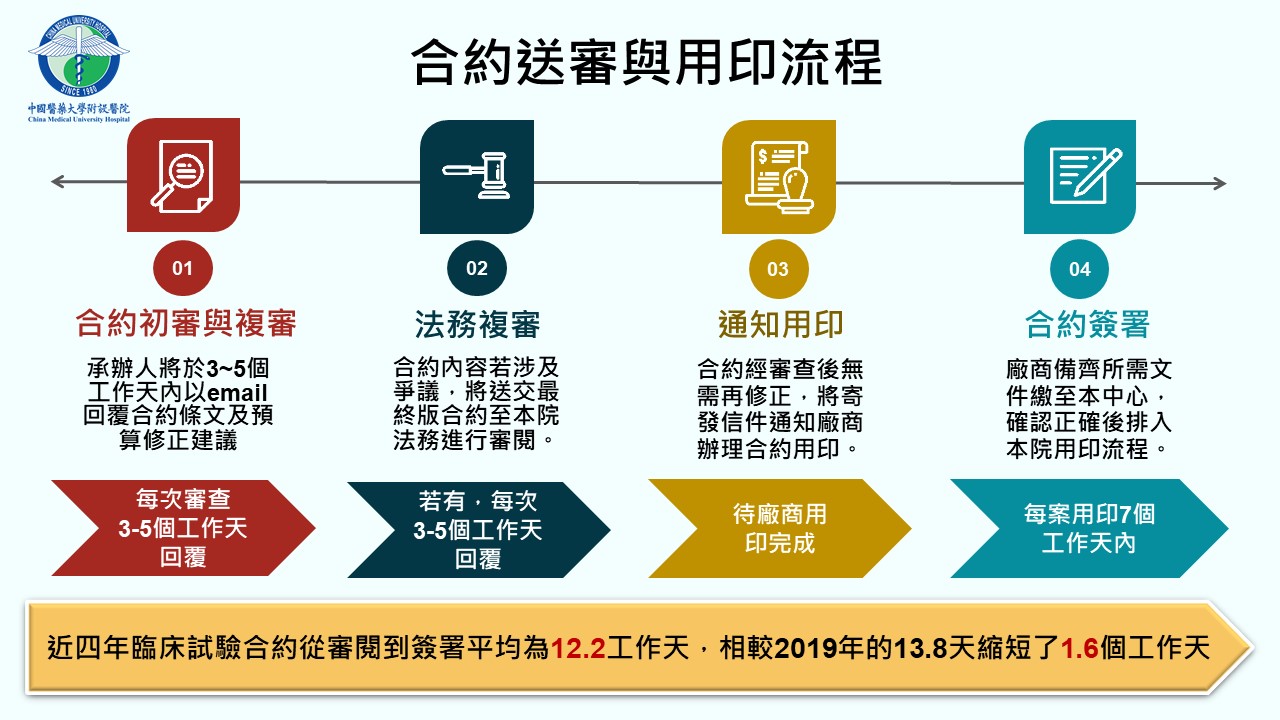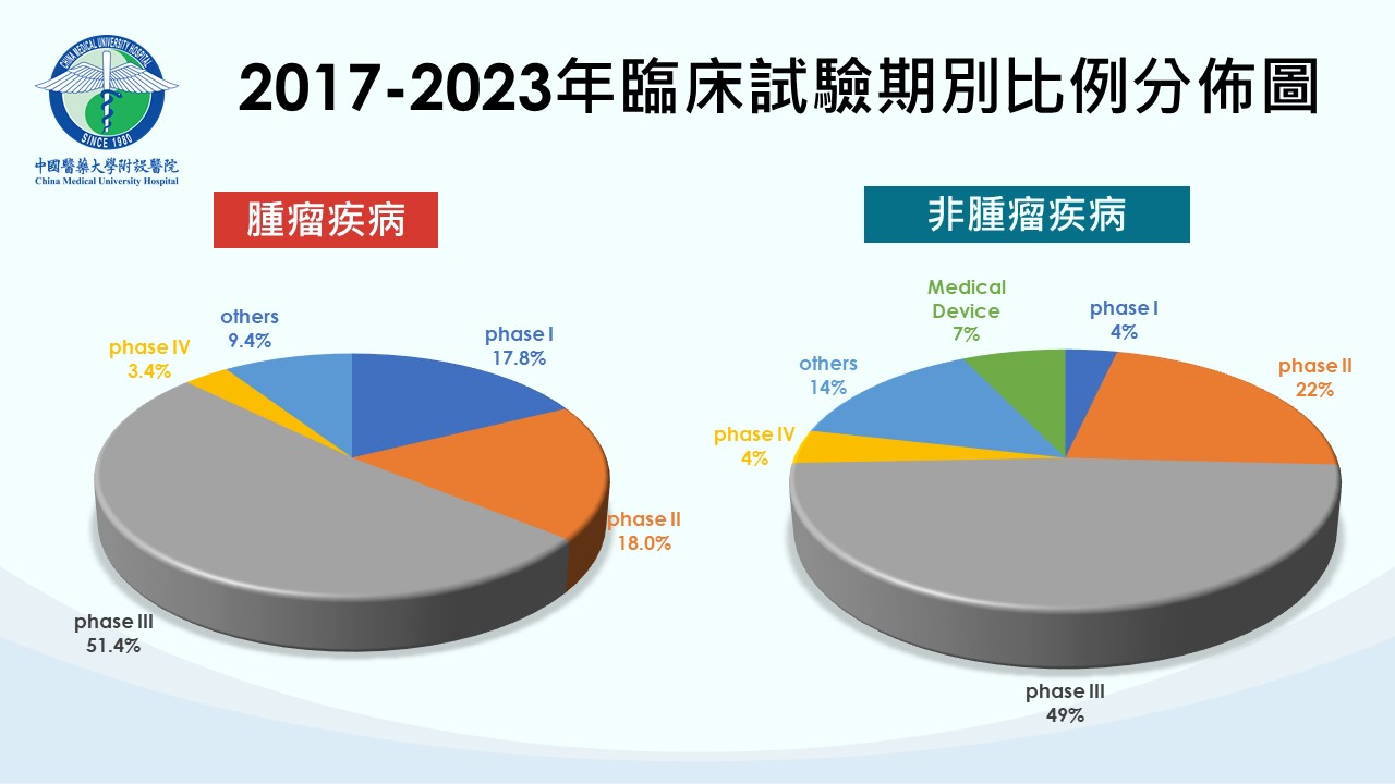1. 本院已是全球多國大藥廠及試驗受託研究機構(CRO)的優選合作對象,並與世界排名前50大國際藥廠幾乎皆有試驗案合作,迄今已與超過420家廠商簽約,執行超過1,600件臨床試驗,其中包含110件以上的phase I試驗案。
