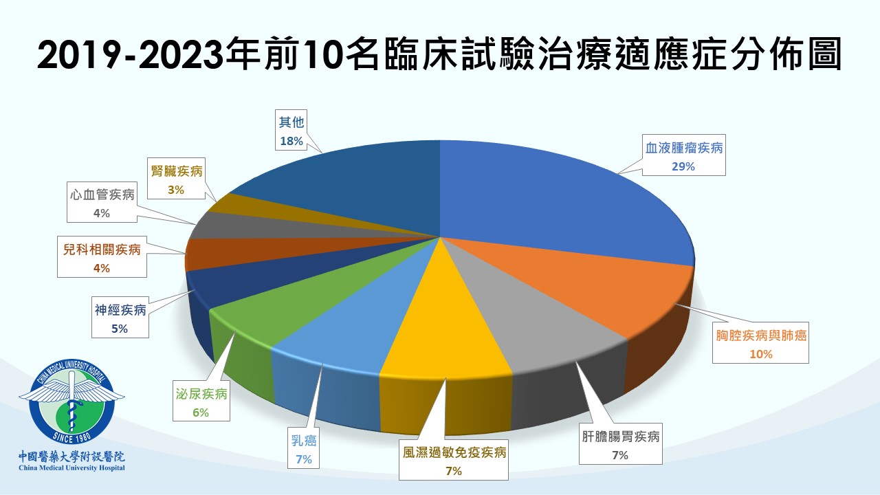 2. 本院臨床試驗執行重點領域包含特定癌症疾病、心肌梗塞、細胞治療應用於急性心肌梗塞、多發性硬化症及中風與其他疾病。