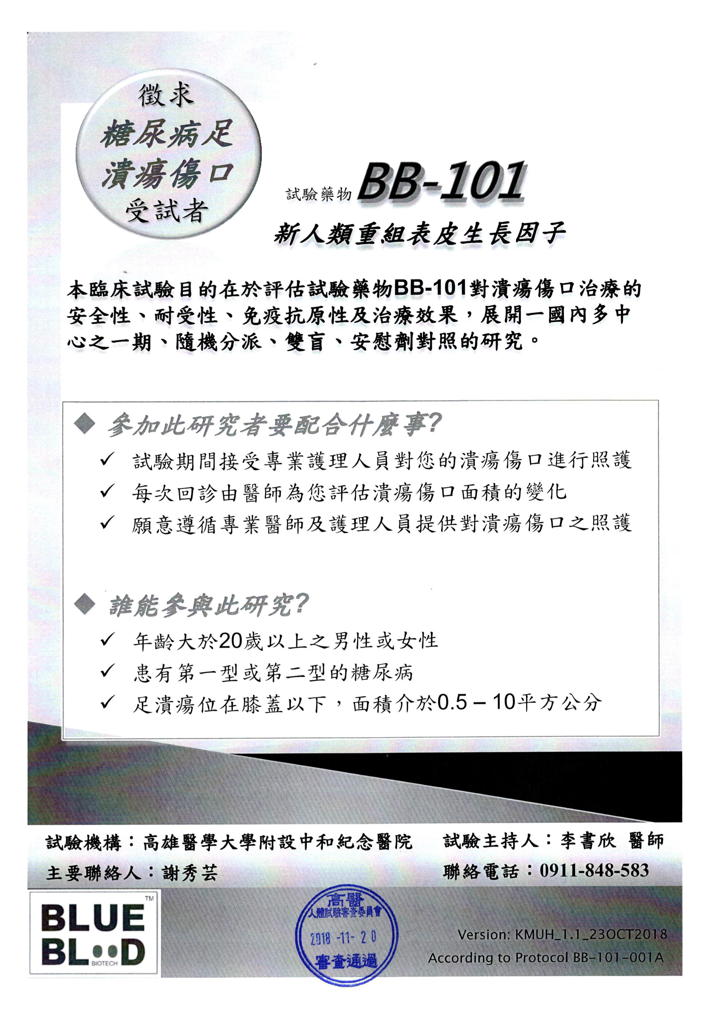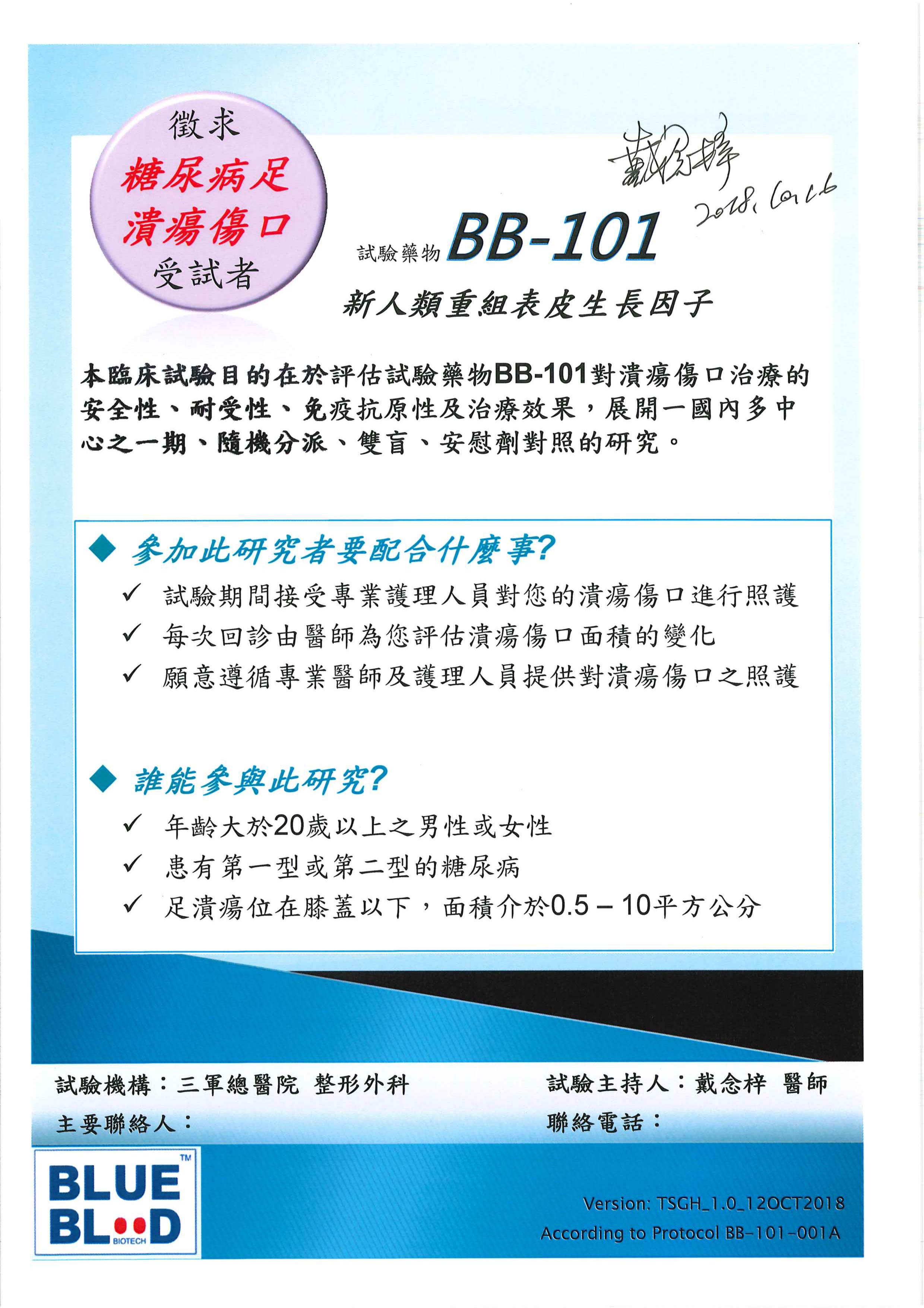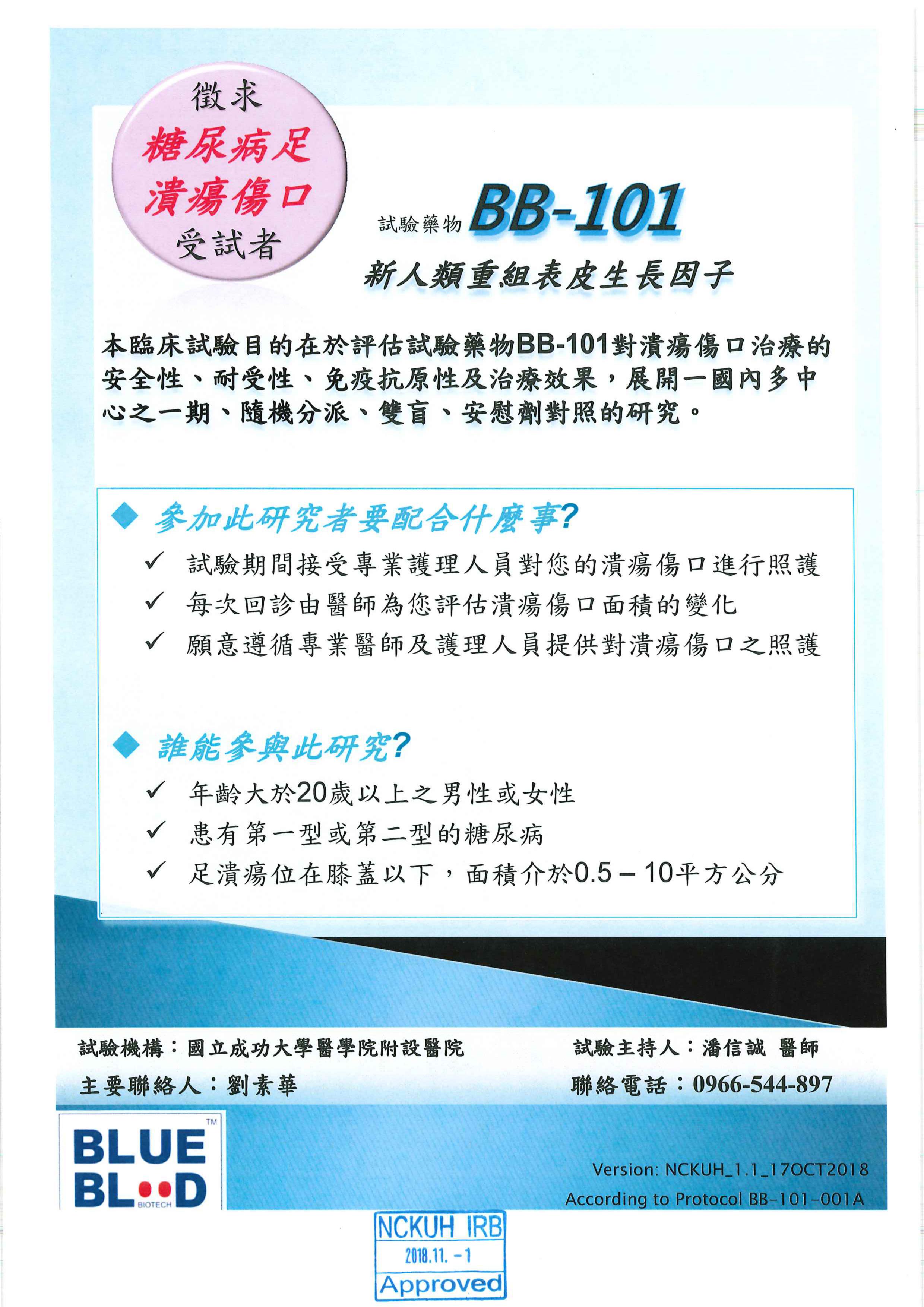 徴求糖尿病足潰瘍傷口受試者