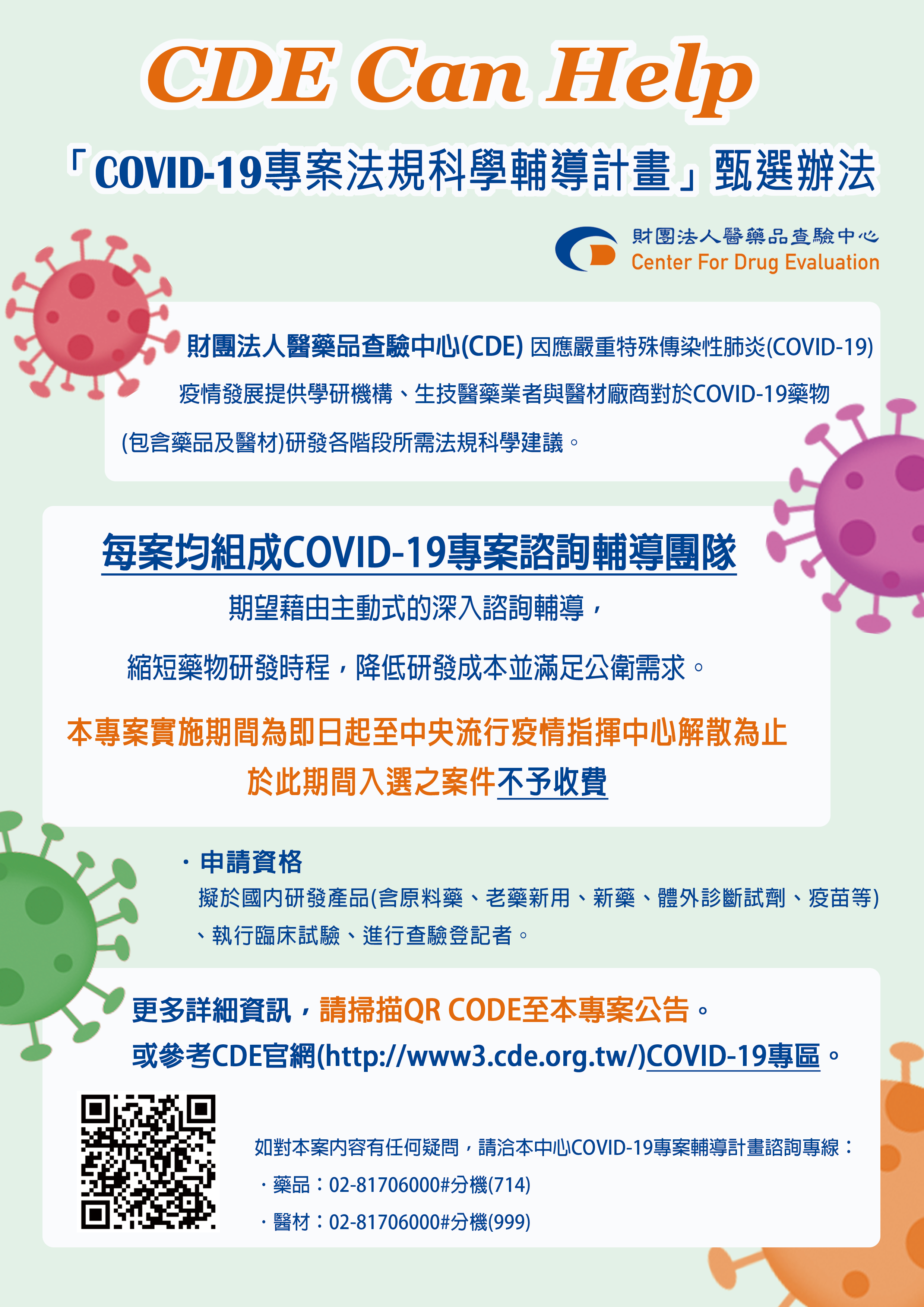 「CDE can Help:COVID-19專案法規科學輔導計畫」甄選辦法