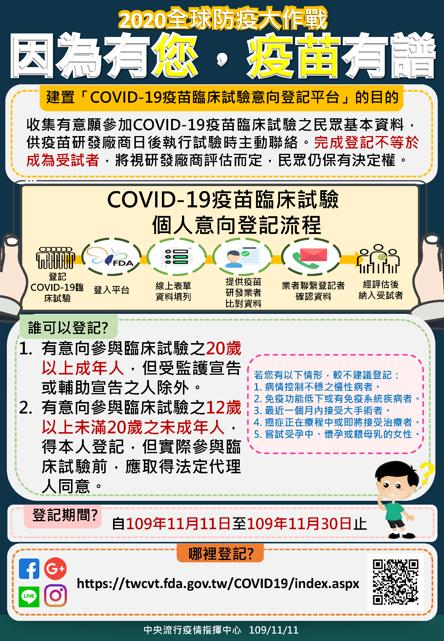 因為有您,疫苗有譜,「COVID-19疫苗臨床試驗意向登記平台」正式上線