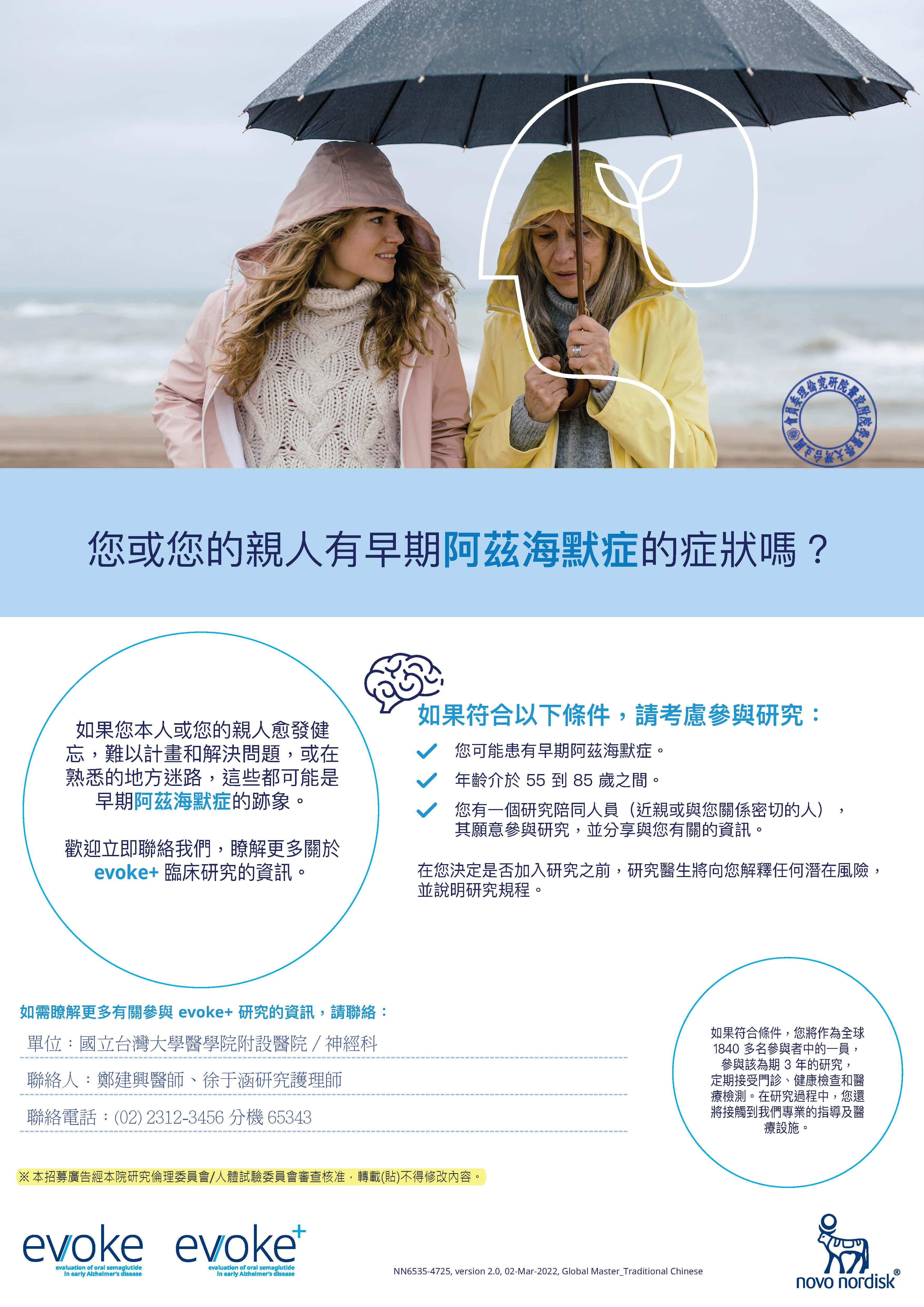 一個隨機分配、雙盲、安慰劑組作為對照的臨床試驗,研究口服semaglutide對於早期阿茲海默症受試者之療效和安全性 (EVOKE plus)
