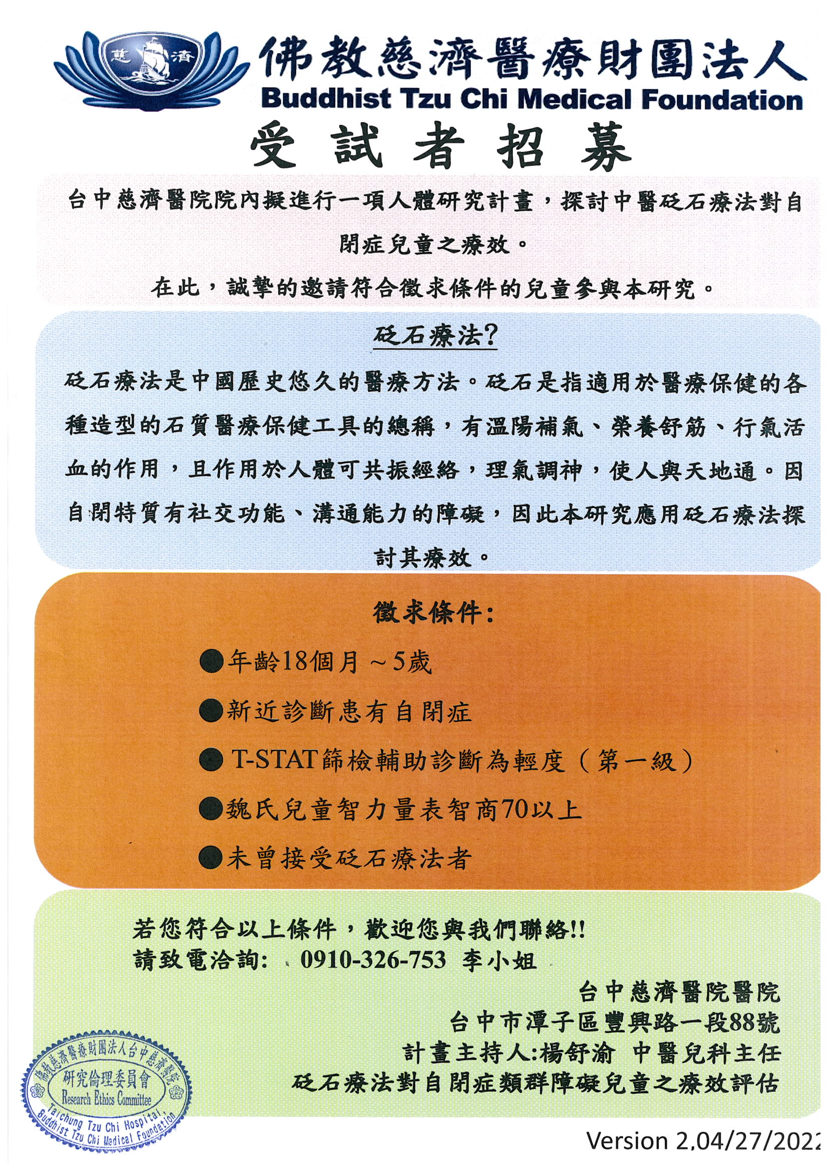 砭石療法對自閉症類群障礙兒童之療效評估