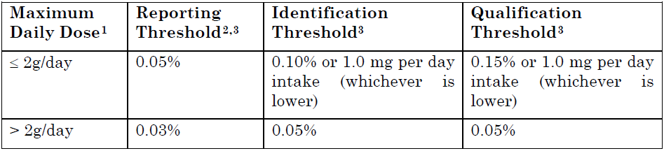 2.不純物種類、結構分析以及批次分析結果(包括臨床、非臨床及安定性試驗批次等)可於此章節加以詳細描述,並說明這些不純物是否被列入規格中。