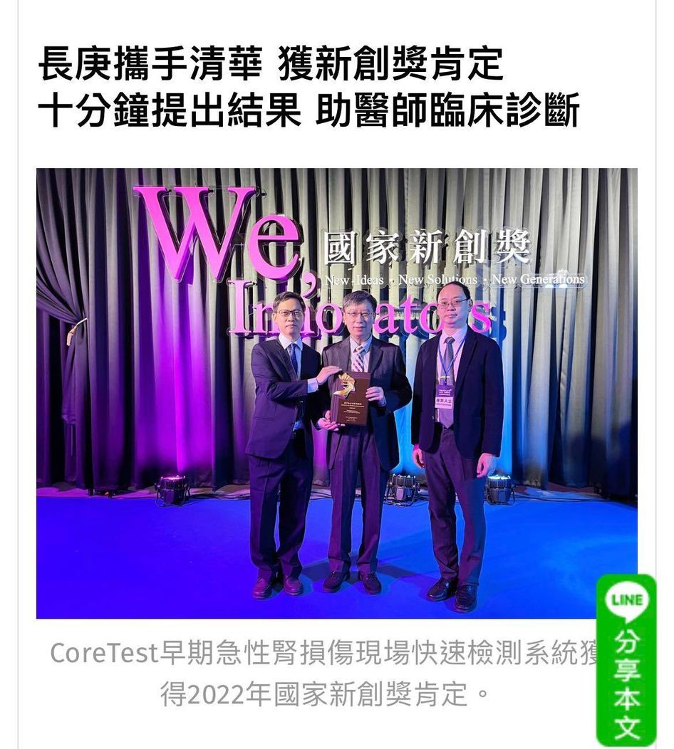 1. Point-of-Care Testing (POCT) 現場快速檢測系統是一種在病患照護現場,如醫院、急診室、診所或家中等中央化驗室以外的地方使用的診斷工具。POCT 的主要優勢在於能夠提供快速的檢測結果,從而實現早期治療。其他相關的 POCT 的好處有: 減少樣本處理流程和較少的測試所需的樣本量。由於 POCT 的便利性,目前被辨認出來對於臨床疾病診斷上可以用來當成檢測標的的蛋白質或是相關中大分子的數量也快速增加。本聯盟陳永昌教授及張智翔教授所研發之早期急性腎損傷現場快速檢測系統可以提供即時的急性腎損傷結果,而不需要等待中央化驗室的結果。考慮到急性腎損傷患者病情的快速變化,及時的檢測結果對於臨床實踐至關重要。本案與國內廠商合作。開發用於急性腎損傷生物標誌物的快速檢測方法是未來研究的一個領域。