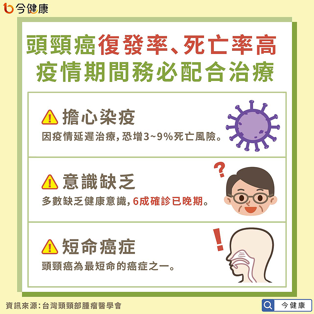- 台灣每年新增頭頸癌患者超過1萬人,多數晚期,導致全喉切除手術。台北榮總治療團隊開發「前導式化學治療組合」,縮小腫瘤範圍後進行手術,保留喉部功能,3年存活率達7成。吸煙、飲酒、嚼檳榔習慣是主要致病因素。病例:60歲吳先生,經治療保留喉部功能,無復發。頭頸癌早期症狀不明顯,晚期率高,早發現早治療重要。預防頭頸癌要避免致癌因子,戒除不良習慣,並留意頸部異狀,及早就醫。台北榮總喉頭頸癌治療取得優異成果,提升生活品質。
